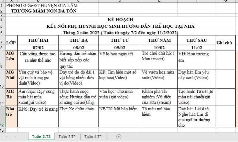 | Tháng 2 năm 2022 ( Tuần từ ngày 7/2 đến ngày 11/2/2022) |