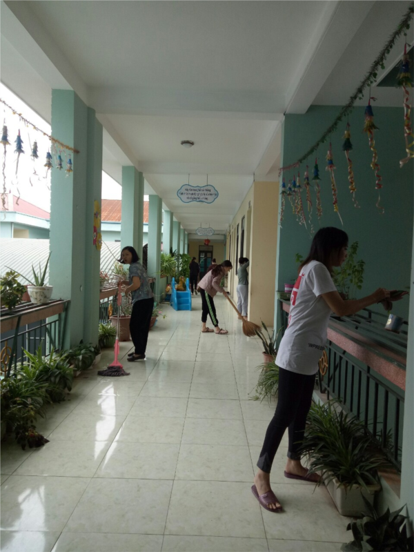 Thực hiện kế hoạch vệ sinh hàng tuần và công tác phòng chống covid - 19 Nhà trường . Khối nhà trẻ trường mầm non Đa Tốn đã tổ chức vệ sinh,lao động vào thứ 5 hàng tuần. Các lớp vệ sinh trong lớp và các khu vực chung từ hành lang, cầu thang và khu vực được phân công. Cả khối luôn làm tốt công tác vệ sinh sạch sẽ để sẵn sàng đón trẻ đến trường.