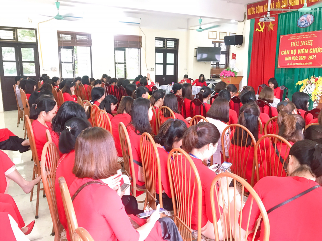 Thực hiện kế hoạch của LĐLĐ huyện Gia Lâm, Phòng GD&ĐT Huyện Gia Lâm, được sự nhất trí của cấp ủy chi bộ, sáng ngày 15/10/2020, Trường MN Đa Tốn tổ chức HNVC năm học 2020 - 2021 nhằm đánh giá kết quả đã đạt được trong năm học 2019 - 2020, đề ra phương hướng, nhiệm vụ, chỉ tiêu, giải pháp cho năm học 2020 - 2021. Đến dự hội nghị có đầy đủ các đ/c CB-GV-NV trong nhà trường. Hội nghị được lắng nghe báo cáo kết quả năm học 2019 - 2020 của đ/c Hiệu trưởng, báo cáo kết quả các phong trào thi đua năm học 2019 - 2020, phương hướng, nhiệm vụ năm học 2020 - 2021 của đ/c Chủ tịch CĐ đồng thời được nghe 2 ý kiến tham luận xây dựng tổ chức CĐ vững mạnh và đổi mới hình thức sinh hoạt chuyên môn. Hội nghị nhất trí cao với các nội dung trong Nghị quyết Hội nghị VC năm học 2020 -2021. Hội nghị cũng bầu ra được Ban TTND nhiệm kỳ 2020 - 2022 gồm 5 đ/c: Nguyễn Thị Nết, Dương Thị Thu, Đinh Thị Thản, Trần Thị Giang, Phan Thị Hiền./.