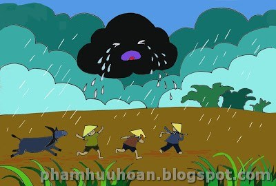 Nhọ nhẻm nhọ nhem thế mà cũng gọi là mây. Thật xấu hổ. Rồi cùng với làn gió nhẹ, dải mây trắng thướt tha trong tà váy bồng xốp trắng tinh lướt qua mặt đám mây đen một cách kiêu ngạo. Mây trắng nhởn nhơ dạo chơi trên những mái nhà, những cánh đồng khô khát. Mây đen vẫn chỉ lặng im. Nó cúi nhìn xuống cánh đồng hạn hán và nghĩ ngợi: “Mình sẽ làm gì để giúp đỡ các cô bác nông dân được nhỉ?”. Nó cố chịu đựng một cái nóng bức dữ dội của ngày hè. Mỗi lúc, đám mây đen một thêm xạm lại, nặng nề, có vẻ như càng xấu xí hơn. Rồi không biết vì thương các bác nông dân hay thương cánh đồng đang khát nước dưới kia, đám mây đen bỗng òa khóc. Những giọt nước mắt của nó trong trắng tinh khiết và mát rượi thấm vào lòng đất mẹ thân yêu. Những cánh đồng reo vui, những cỏ cây hoa lá bừng tỉnh, ríu rang nói cười như trong ngày hội. Tất cả đều cám ơn đám mây đen, cám ơn cơn mưa tốt bụng.